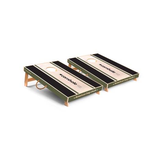 New for 2024 is our upgraded cornhole design, Cornhole Bushman. Bushman has the same design, quality and workmanship as the original plus a few improvements. Bushman has a new classic stripe colour palette in black and moss green, the under board chuck bag storage has been improved and you now have the option of adding a premium board bag to protect your board and make transport easier. Each Bushman set comes with two sets of 4 chuck bags in black and moss green with each set having their own zip up storage pouch that slots neatly under the board. Cornhole Bushman retains our premium solid birch frame with recessed ply playing surface to retain that flush finished look of its predecessor.